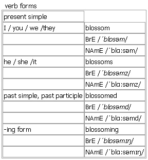 blos·som [blossom blossoms blossomed blossoming] noun, verb BrE [ˈblɒsəm] NAmE [ˈblɑːsəm]