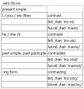 verb BrE [kənˈtrɑːst] ; NAmE [kənˈtræst]