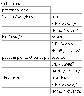 cover [cover covers covered covering] verb, noun BrE [ˈkʌvə(r)] NAmE [ˈkʌvər]