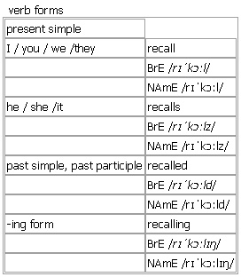 verb BrE [rɪˈkɔːl] ; NAmE [rɪˈkɔːl]