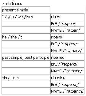 [ˈraɪpən] NAmE [ˈraɪpən] verb intransitive, transitive