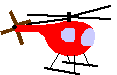 A helicopter is a flying machine. It is kept in the air by a sideways propeller on top.