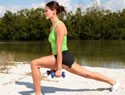 lunge | [lʌndʒ] |  | danh từ | | |  | đường kiếm tấn công bất thình lình | | |  | sự lao tới, sự nhào tới |  | nội động từ | | |  | tấn công bất thình lình bằng mũi kiếm (đấu kiếm) | | |  | hích vai, xô vai (quyền Anh) | | |  | lao lên tấn công bất thình lình | | |  | đâm, thọc mạnh | | |  | đá hất (ngựa) |  | danh từ | | |  | dây dạy ngựa chạy vòng tròn | | |  | nơi dạy ngựa chạy vòng tròn |