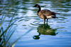common greyish-brown wild goose of North America with a loud, trumpeting call