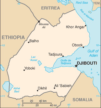 1. a country in northeastern Africa on the Somali peninsula; formerly under French control but became independent in 1997 • Syn: Republic of Djibouti, Afars and Issas • Derivationally related forms: Djiboutian • Instance Hypernyms: African country, African nation • Member Holonyms: Arab League • Part Holonyms: Africa, Somali peninsula, Horn of Africa • Member Meronyms: Djiboutian • Part Meronyms: capital of Djibouti 2. port city on the Gulf of Aden; the capital and largest city of Djibouti • Syn: capital of Djibouti • Instance Hypernyms: national capital, port • Part Holonyms: Republic of Djibouti, Afars and Issas