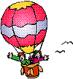 balloon for travel through the air in a basket suspended below a large bag of heated air