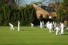 a bowling game played on a level lawn with biased wooden balls that are rolled at a jack