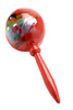 a percussion instrument consisting of a hollow gourd containing pebbles or beans;