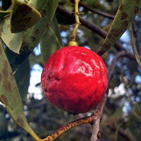 1. the fruit of the Brisbane quandong tree • Syn: blue fig • Hypernyms: fruit • Part Holonyms: quandong tree, Brisbane quandong, silver quandong tree, blue fig, Elaeocarpus grandis 2. Australian tree having hard white timber and glossy green leaves with white flowers followed by one-seeded glossy blue fruit • Syn: quandong tree, Brisbane quandong, silver quandong tree, blue fig, Elaeocarpus grandis • Hypernyms: tree • Member Holonyms: Elaeocarpus, genus Elaeocarpus • Part Meronyms: silver quandong, blue fig 3. Australian tree with edible flesh and edible nutlike seed • Syn: quandang, quandong tree, Eucarya acuminata, Fusanus acuminatus • Hypernyms: tree • Member Holonyms: Eucarya, genus Eucarya, Fusanus, genus Fusanus • Part Meronyms: quandang, quantong, native peach, quandong nut 4. red Australian fruit; used for dessert or in jam • Syn: quandang, quantong, native peach • Hypernyms: edible fruit • Part Holonyms: quandang, quandong tree, Eucarya acuminata, Fusanus acuminatus