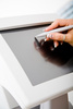 a computer display that enables the user to interact with the computer by touching areas on the screen